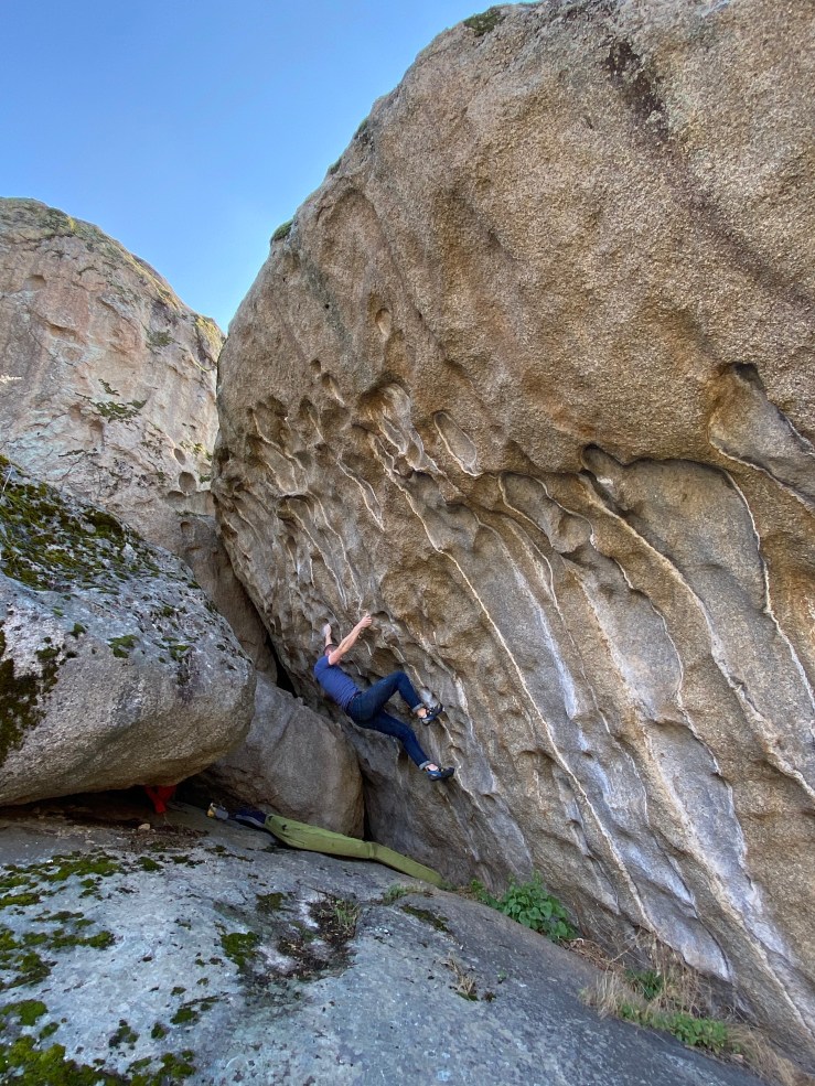 Cocoon, pictured above, is a classic at its grade in the area which features these massive huecos. The predator block has lots of great problems, which don’t top out. This makes it a good option if you don’t have as many pads or spotters as you’d like for the higher problems. The landings are generally flat and grassy which definitely helps.