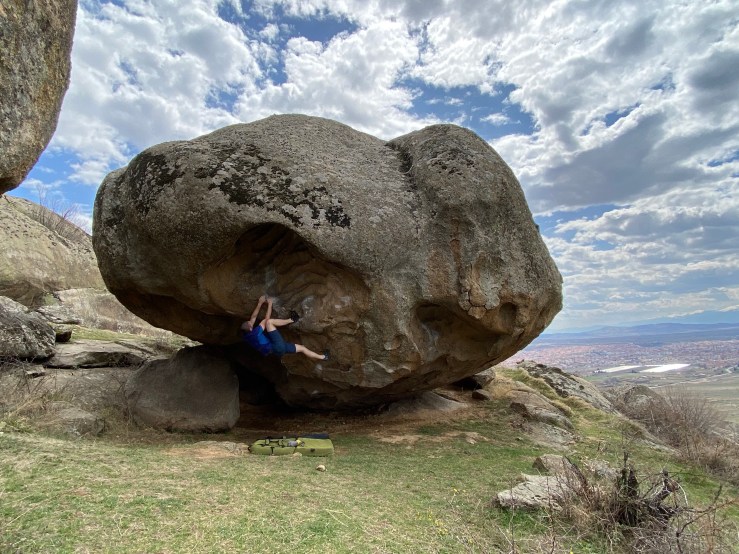 Some of the landings at Dabnica were a bit rockier or uneven, and the paths to the boulders were a little overgrown. The rock quality here more than makes up for that and the problems have great moves. One of the greatest joys of climbing in Prilep is the movement. The rock here has so many unique features and the moves often feel improbable until you do them. When you finally stick a move like this it feels incredibly satisfying and along with the great rock quality, makes the problems here genuine classics.