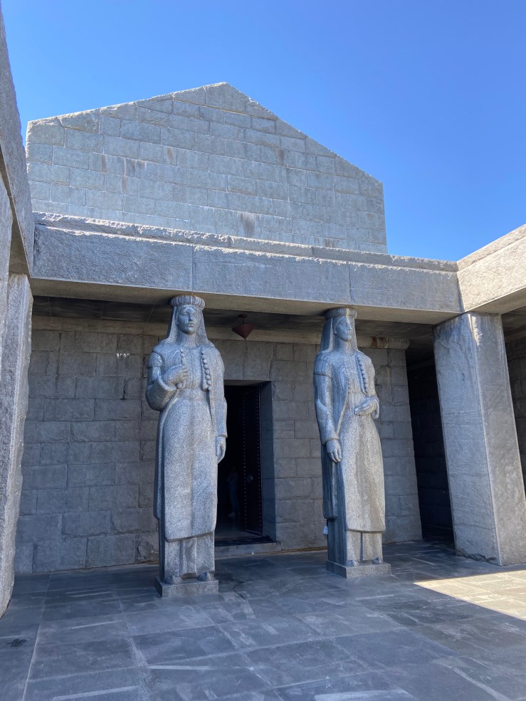 The Mausoleum is around 35 km from Kotor, up a panoramic serpentine road, in the Lovcen National Park. Both the mausoleum and Kotor can be visited in a day trip by car from Podgorica. Built in the 1970’s for a nationally beloved Montenegrin poet and leader the Mausoleum is elaborate, created from solid slabs of stone, with giant statues. It has breathtaking panoramic views down to the sea and you’re high up among the mountains on the viewing platform, with the birds flying amongst you. It was well worth the visit.