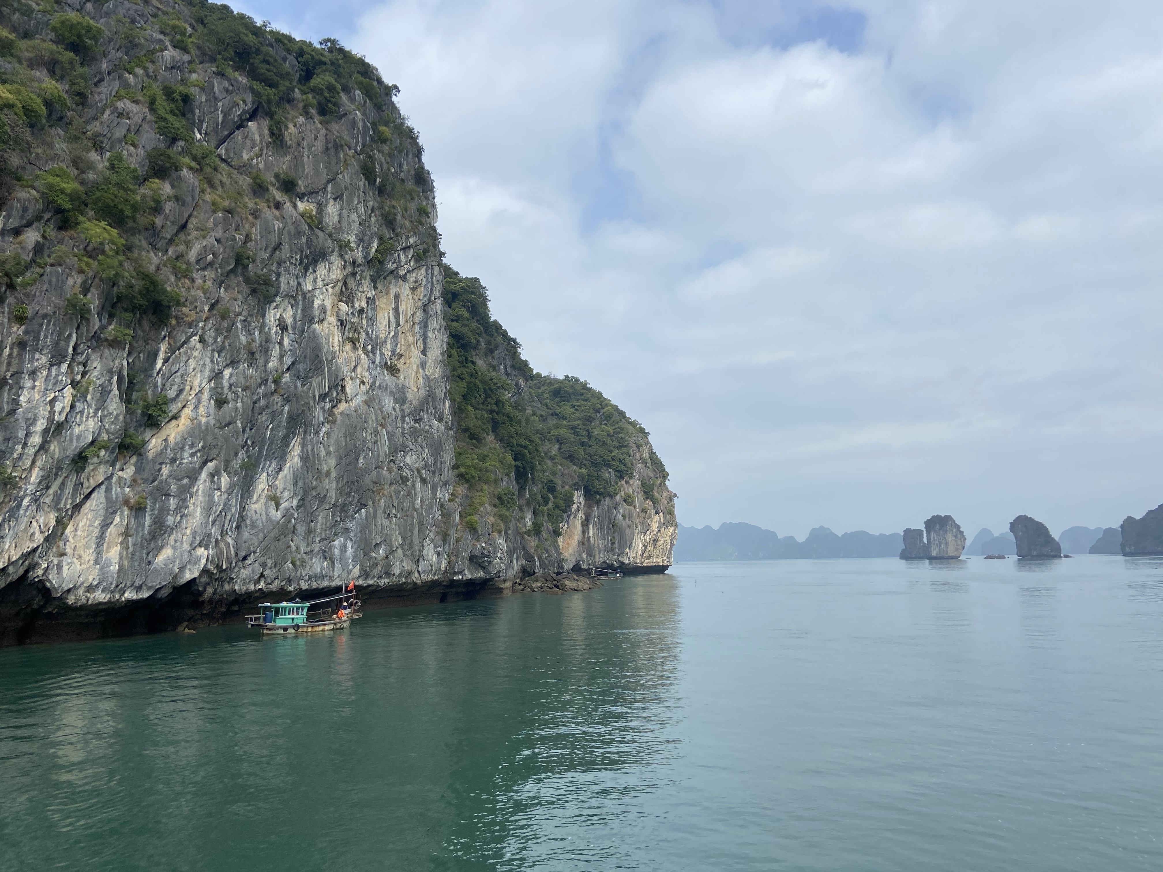 If you don’t get lucky with the tides for DWS, or if you just want a relaxed rest day with some beautiful views, a boat trip in either Hạ long or Lan Ha bay is definitely worth it. An 8 hour boat trip, with an hour kayaking, a visit to a floating fishing village and lunch generally costs around €‎20 per person which is exceptional value. At this price you will be in a group, usually of around 30 people. It won’t be the most authentic day out you ever have in Vietnam, but the bays are so vast and beautiful it really is worth doing. As we mentioned in the DWS section, Lan Ha is the quieter bay with smaller boats, which made the decision easy for us. We actually passed a few of the DWS and sport crags on the day so we had a good look and got very psyched to return with some rock shoes. Once we’d seen the rock in the bay with our own eyes, it would have been inconceivable to leave without climbing there!