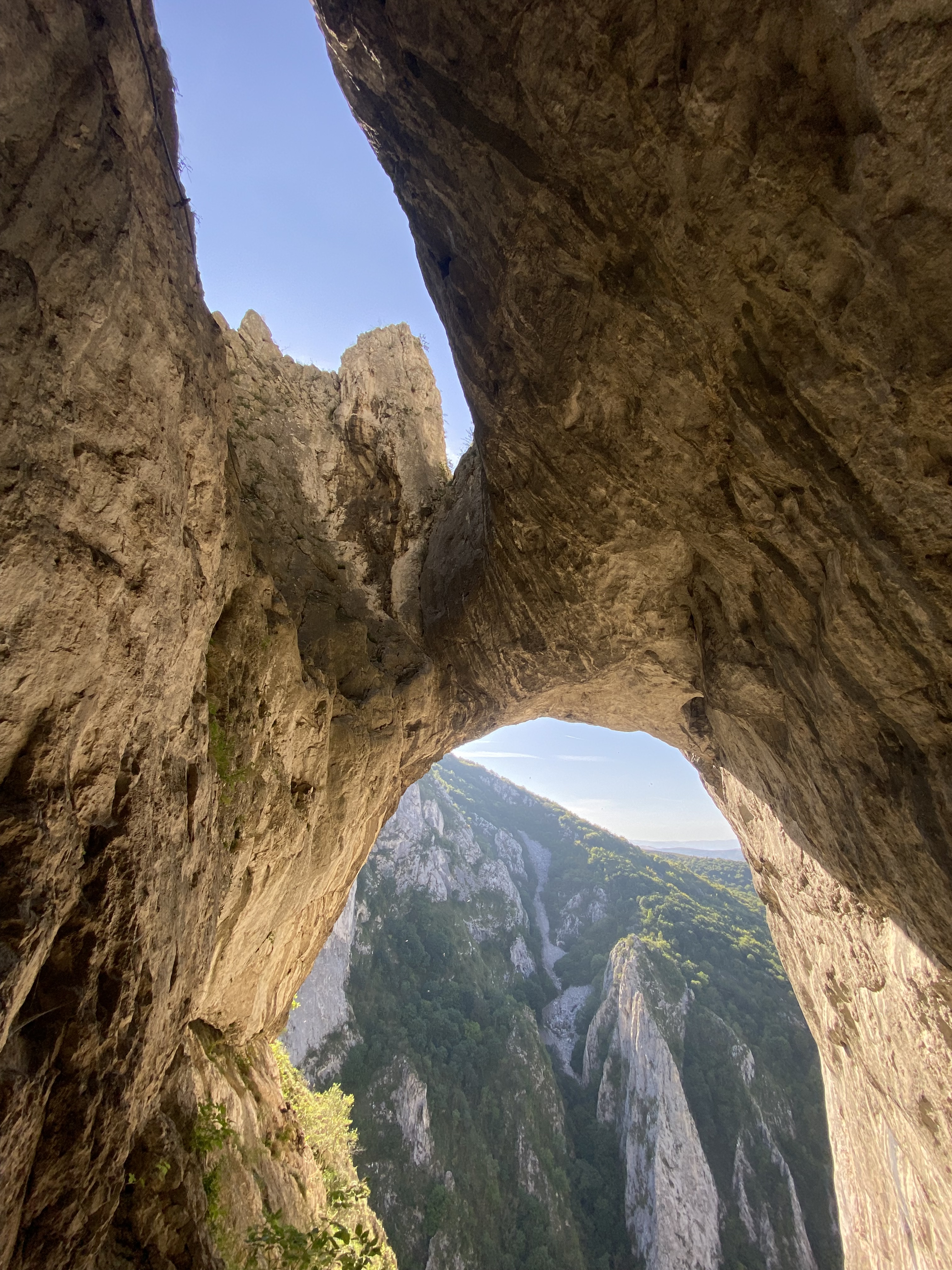 For an active rest day in the gorge, there is a superb via ferrata through the Grota lui Hili, a stunning arch-come-cave that sits high in the gorge with a stunning view. The via ferrata had some controversies, it was built in 2012 on an existing low grade climbing route and the cables got chopped. It seems to be widely accepted now, but one thing we do think is that it’s not the job of visiting climbers and tourists to interfere in the climbing ethics of another country. Whether you go for routes or via ferrata, the Grota lui Hili is an amazing piece of rock architecture and it gives you a birds eye view of the huge amount of rock in Cheile Turzii. This side of the gorge bakes in the sun all day so go when it will be cool or pack your sun cream!