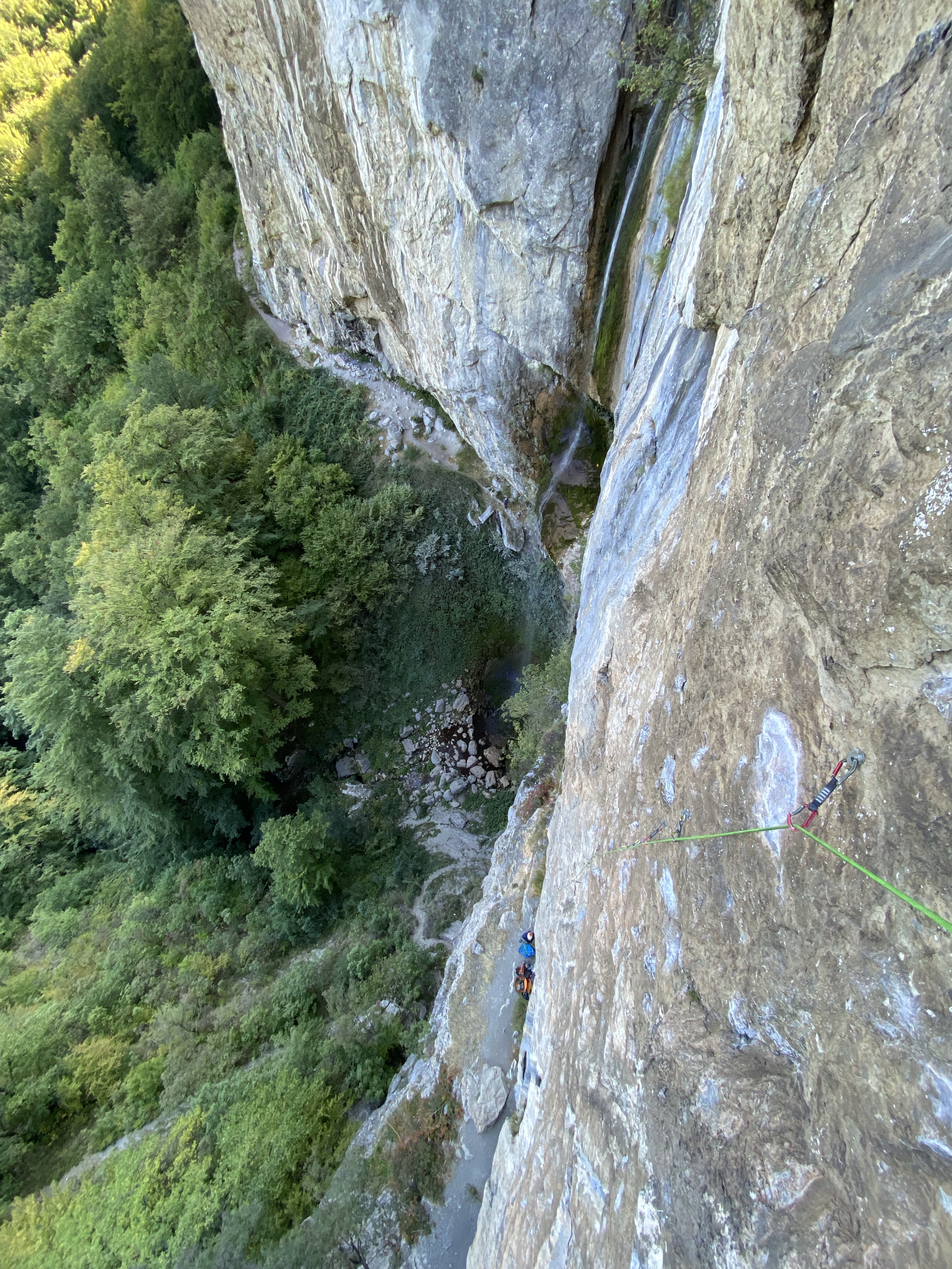 Tamina is a beautiful area, the crag is set high on the hillside in the forest, with a 45 minute approach. There is a cool waterfall and series of ladders up a canyon right at the crag that is worth a look while you’re there. The routes at Tamina are mostly quite long and on a really big and impressive crag. The quality of the rock is not as good and it definitely doesn’t compare to crags like belvedere. Tamina has about 70 routes, from 5+ to 8c+ and it seems the harder the route the better the rock is, the mid 8s looked stunning…but far beyond us. It is a nice crag for a day out and the environment is wonderful, also known as ‘the land of the bears’ so watch out!
