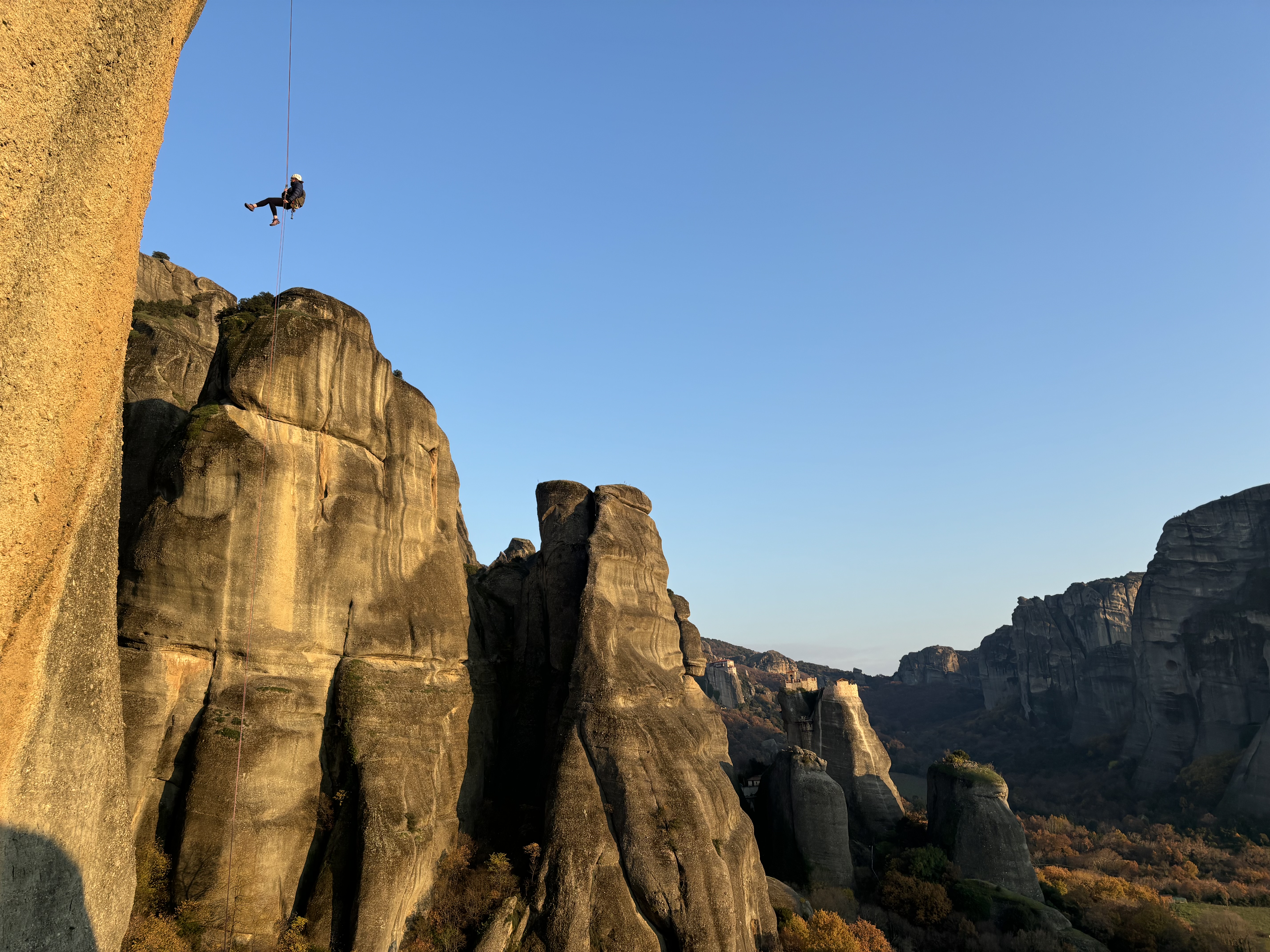 We really enjoyed climbing in Meteora and visiting the area in general. It is a very beautiful place and an idyll for climbers. In many ways the style of climbing here can feel a little bit like mountaineering. It is great fun to reach a summit, write in the book on the top and abseil off before going to do another tower straight afterwards. The beautiful monasteries of Meteora are incredible, but also very touristic. For climbers there is no such problem. We enjoyed having the summits to ourselves and lounging about in the sunshine on the top, taking in the view. For sure it can have some adventurous moments, but it is well worth the effort to leave with memorable experiences that live longer in the mind than the average sport route.