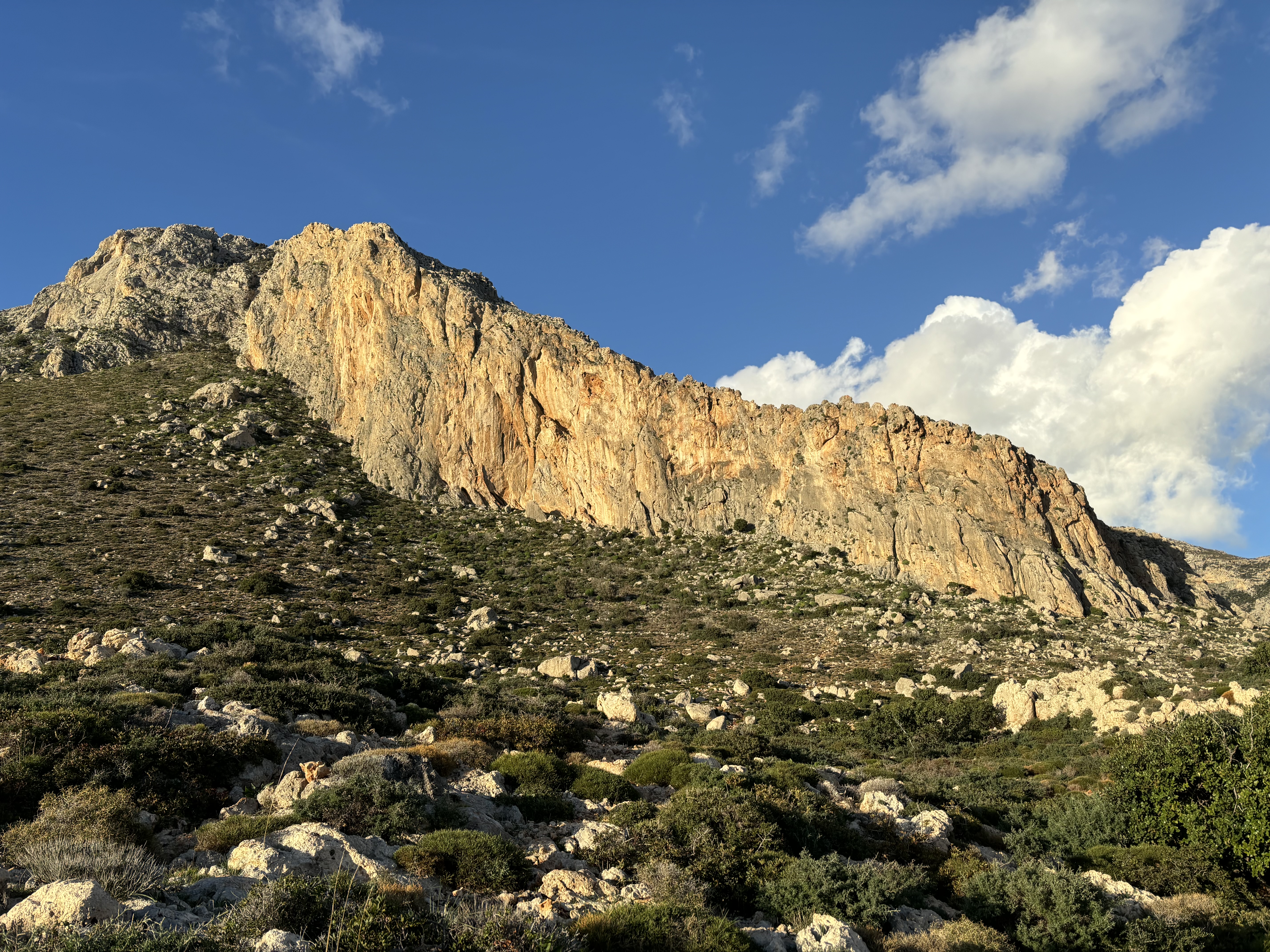 The climbing lies along tall bands of cliffs that run between the villages of Manikia and Vrisi. There is a good mix of styles, with plenty of tufas, grey slabs and steep orange rock. There are also a good amount of multipitch routes to choose from. One thing to bear in mind with Manikia is that there isn’t a huge amount of north facing or very shaded crags. This means you can have limited options if you’re in the hotter months, and can lead to honey potting. It can also get cold in mid winter, but there are lots of sun trap crags to give you some nice warmth if the forecast is good. We climbed in Manikia for a week in November and it was generally pretty good conditions – overcast and mild. When the sun did shine it was surprisingly still quite hot and the shade was preferable.